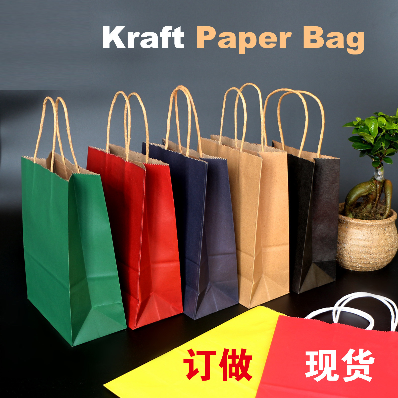 現物はカラークラフト紙の手提げ袋と紙袋を提供しています。