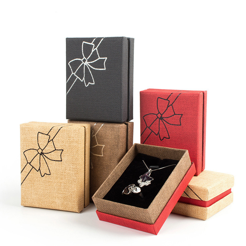 温州製卸売りジュエリーバッグ装飾品麻布紋パーマ蝶結びネックレスペンダントセット紙箱アクセサリー箱