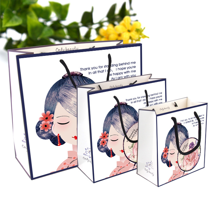 中号の紙袋の愛は贈り物の袋を注文して卸売りしてlogoの花の顔の女の子の手提げ袋の現物の卸売りを印刷します。