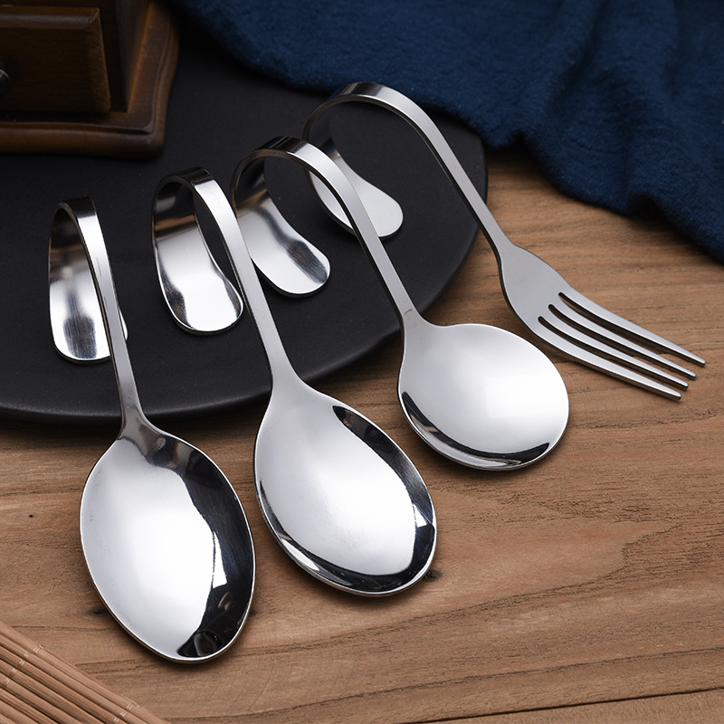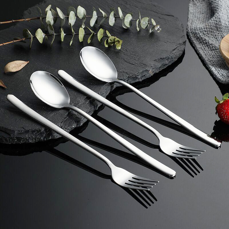 ステンレス1010食器曲げ柄先フォークサラダデザートスプーンねじれホテル用品バイキングスプーン