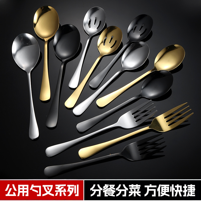 1010ステンレス鋼の厚い共用スプーンの長い柄の分菜フォークの共用スプーンの分食のセルフサービスの共有スプーン