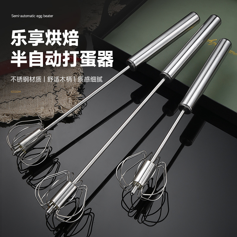ステンレス半自動卵泡立て器クリームミキサー手動プッシュ式回転送り器キッチンベーキングツール
