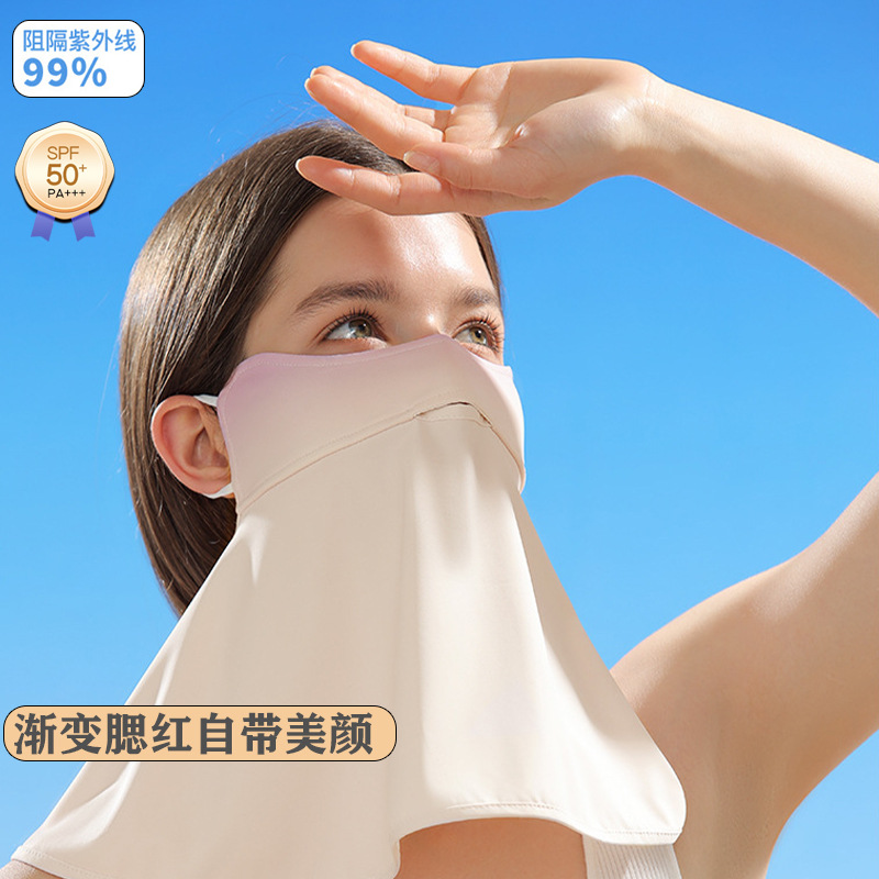 日焼け止めマスク、顔の保護、女性用、紫外線防止、夏のサイクリング、首の保護、アイスシルク、グラデーション、運転用日よけマスク、フェイスシールド