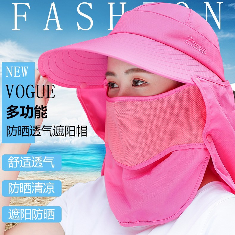 爆発的な日焼け止めマスクとつば付き紫外線防止通気性マスク全顔日焼け止めマスク夏の女性帽子のつばの顔ジニ