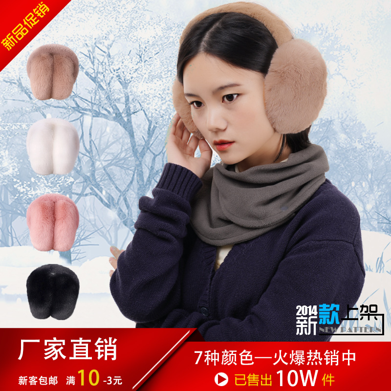 暖かい耳カバーの女性がぬいぐるみを折って、冬のファッション防寒耳保護カバーの学生はウサギの毛耳に似せて耳を温める