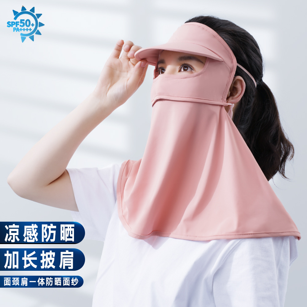 日焼け止めマスク女性夏の長い首保護氷糸通気性つば紫外線防止屋外日焼け止めマスク顔ジニ
