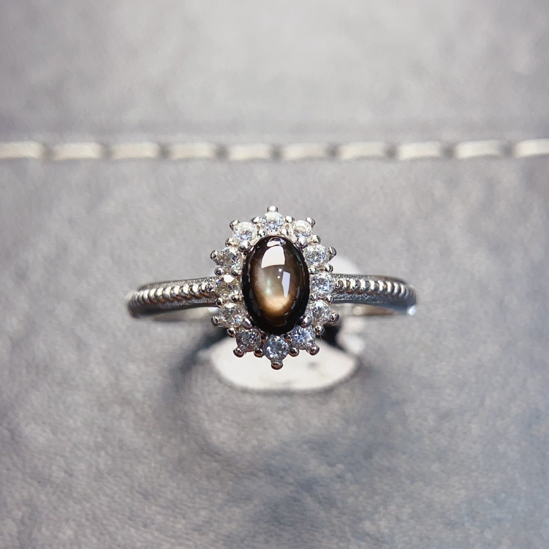 工場卸売人気の天然スターライトサファイアリング S925 シルバー象嵌メインストーン 4*6 ホット販売ヨーロッパとアメリカの 1 個