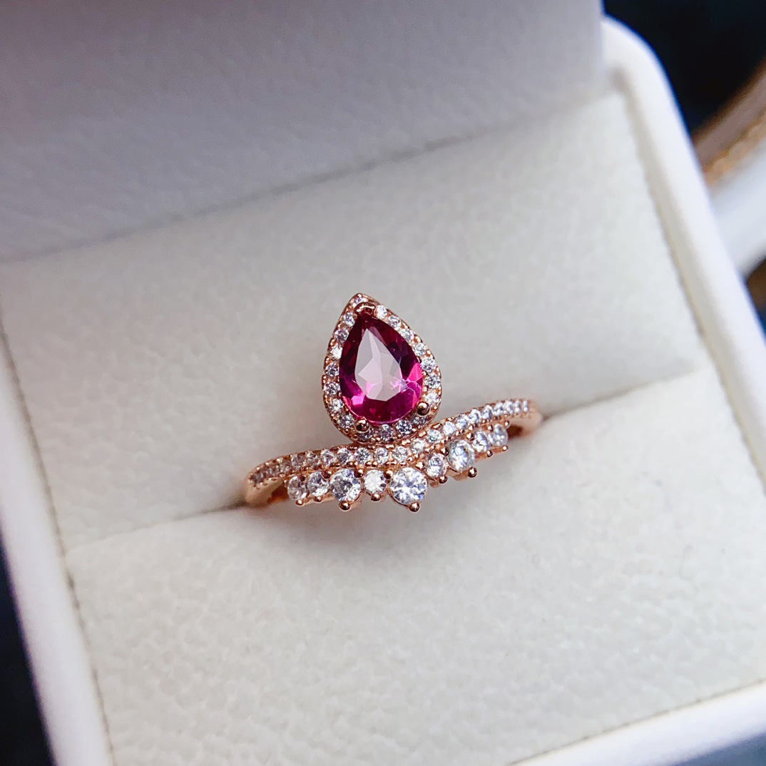 工場卸売の人気商品 天然ルビー K金メッキリング S925シルバー製 メインストーン4*5mm 欧米で人気の高級品