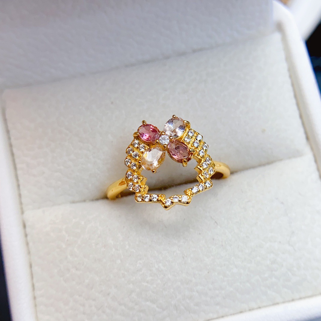 工場卸売り爆金天然碧璽指輪S925銀モザイク主石3*4人気欧米代発