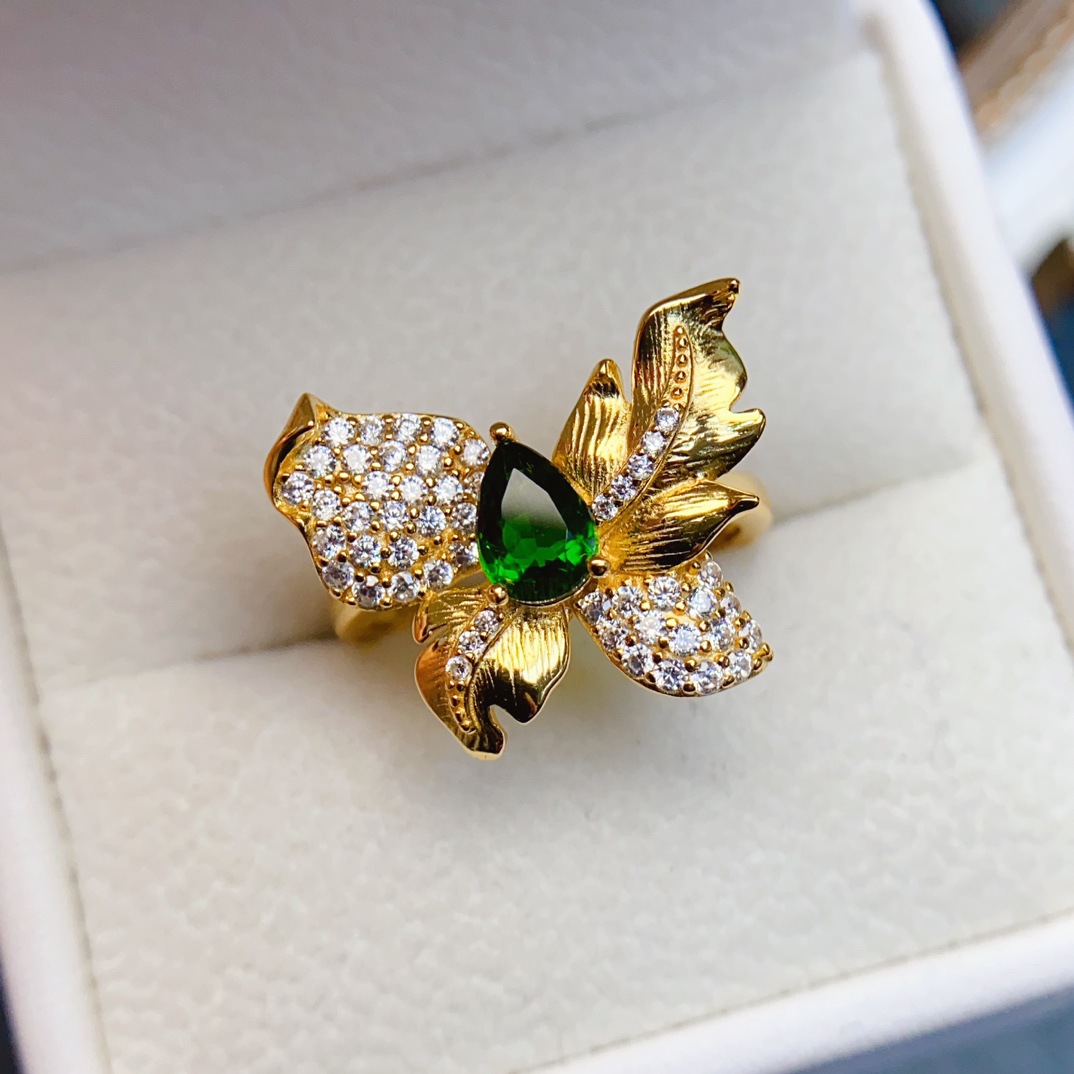 工場卸売り起爆天然透輝石指輪S925銀モザイク主石5*7人気欧米の代理店