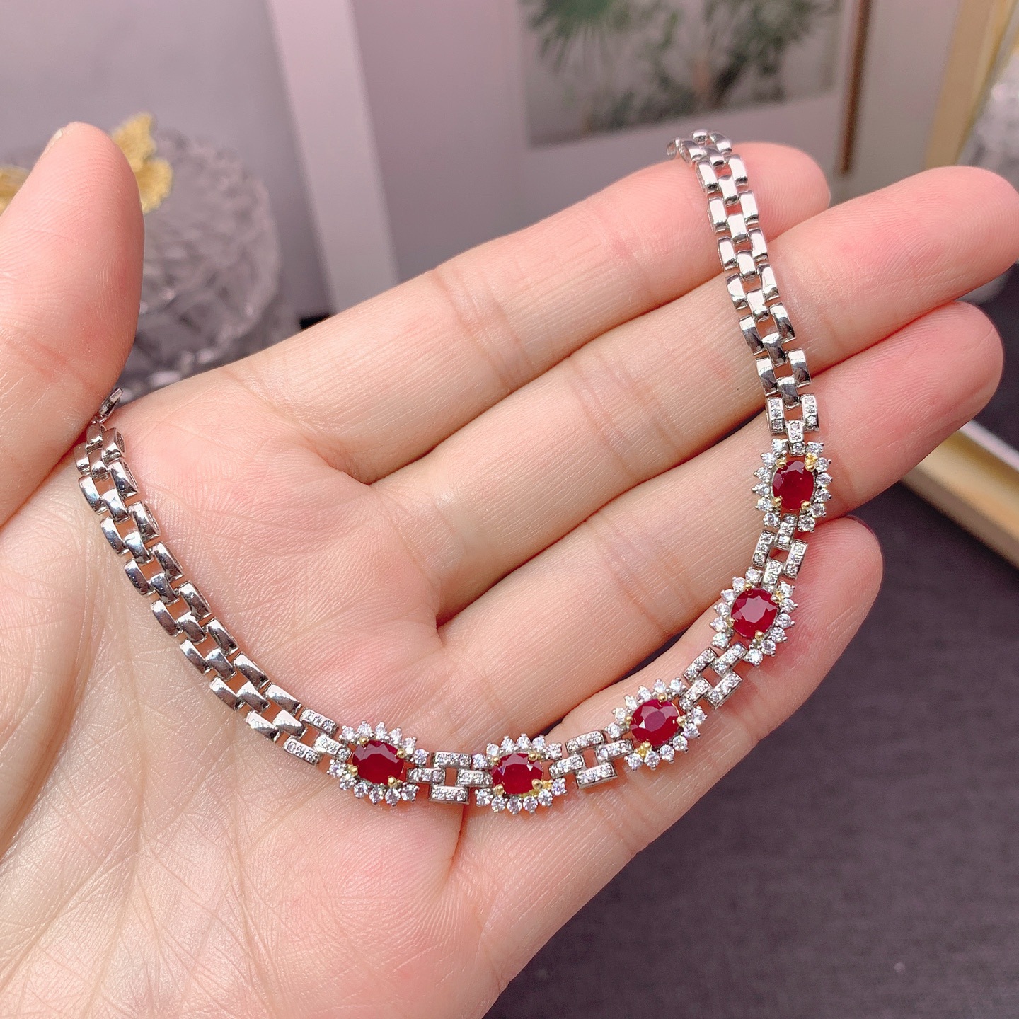 工場卸売り爆金天然ルビーブレスレットS925銀モザイク主石4*5人気欧米代発