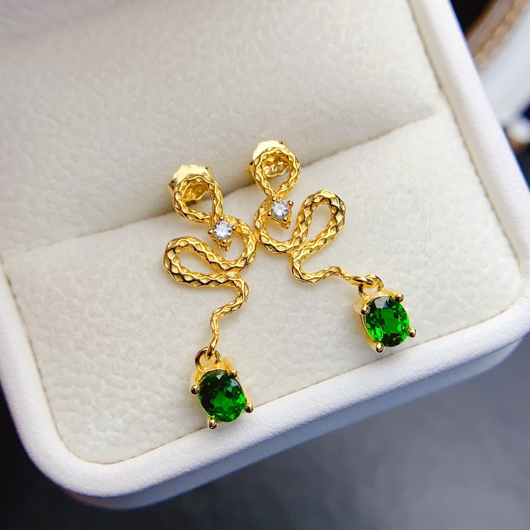 工場卸売り爆金天然透輝石ピアスS925銀モザイク主石4*5人気欧米の代理店