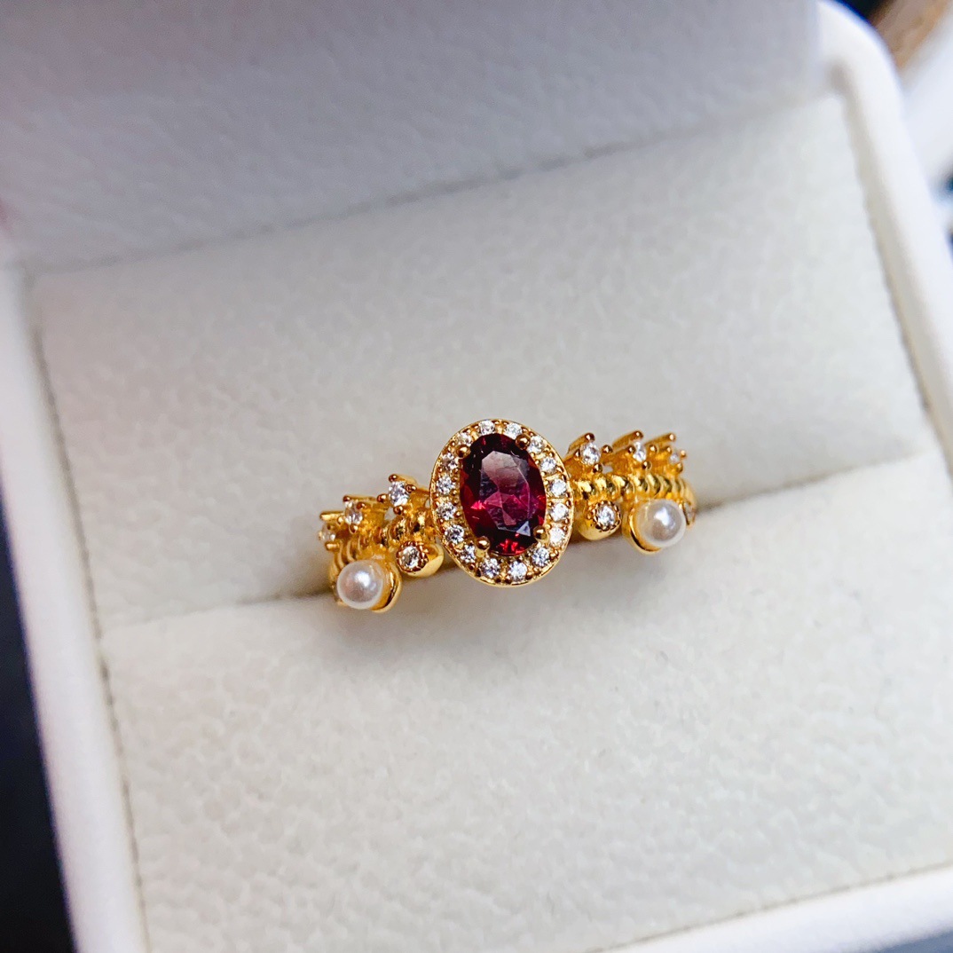 工場卸売り起爆天然ガーネット指輪S925銀モザイク主石4*6人気欧米代発