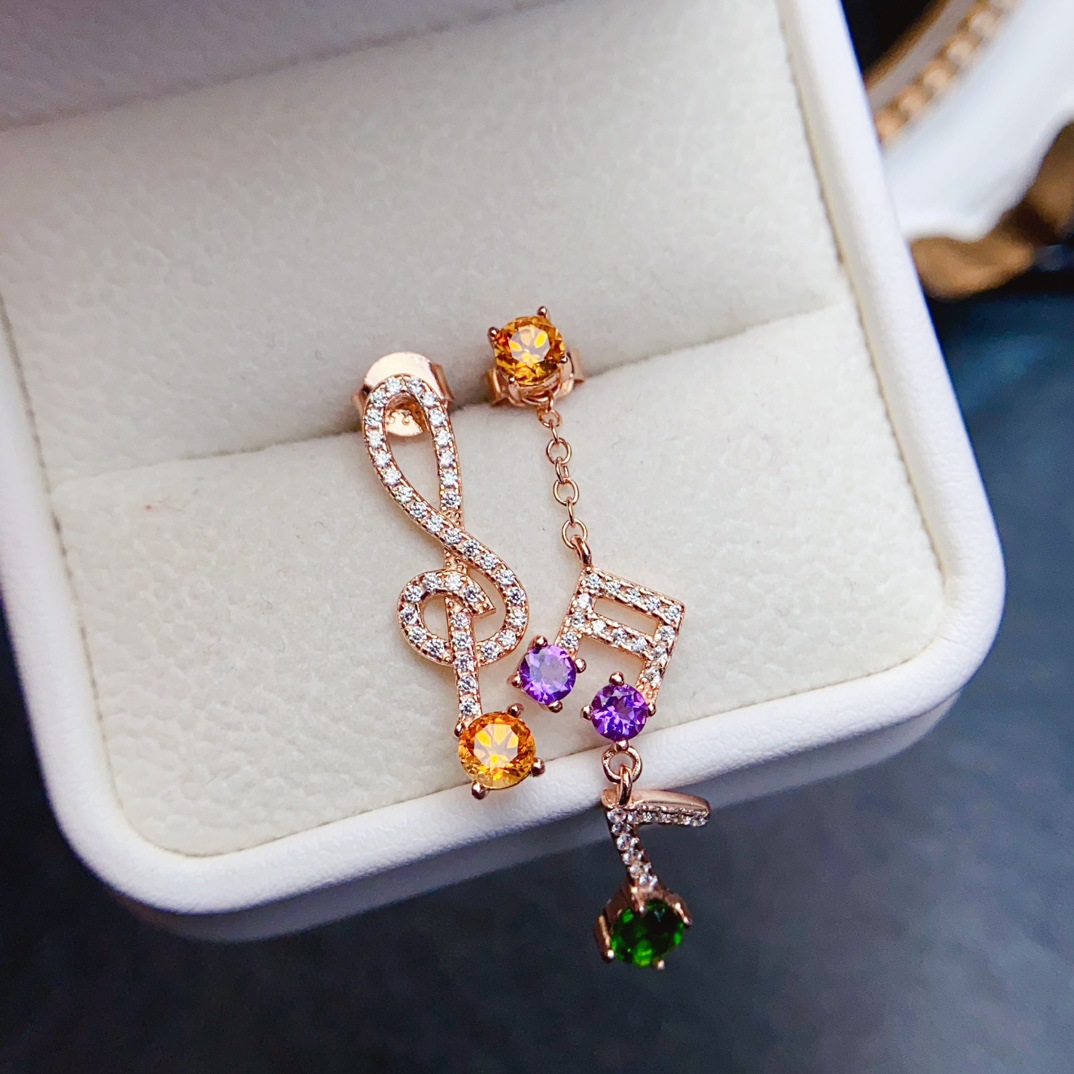 工場卸売り爆金天然透輝石ピアスS925銀モザイク主石4*6人気欧米の代理