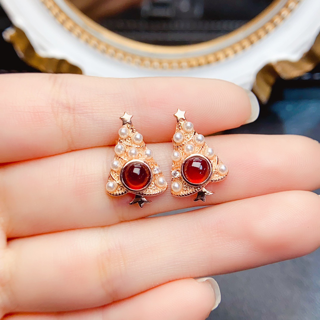 工場卸売り爆金天然ガーネットピアスS925銀モザイク主石3*3人気欧米