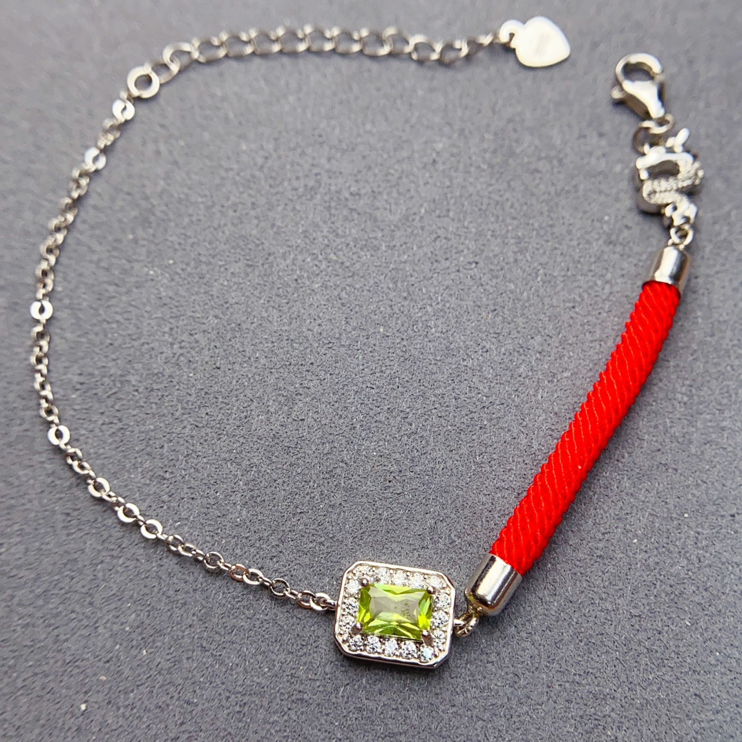 工場卸売り爆金天然オリビンブレスレットS925銀モザイク主石4*6人気欧米