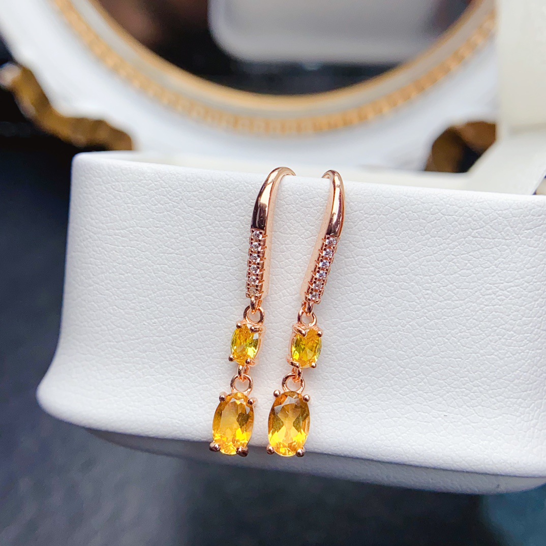 工場卸売り爆金天然黄水晶ピアスS925銀モザイク主石4*6人気欧米