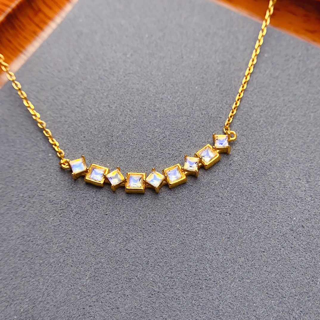 工場卸売り起爆天然月光石ネックレスS925銀モザイク主石3*3人気欧米代発