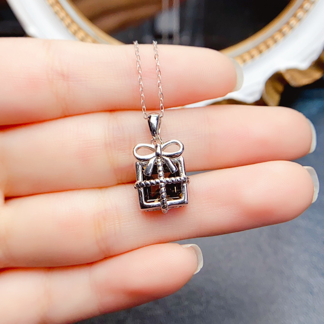 工場卸売り爆金天然茶水晶ペンダントS925銀モザイク主石8*8人気欧米代発
