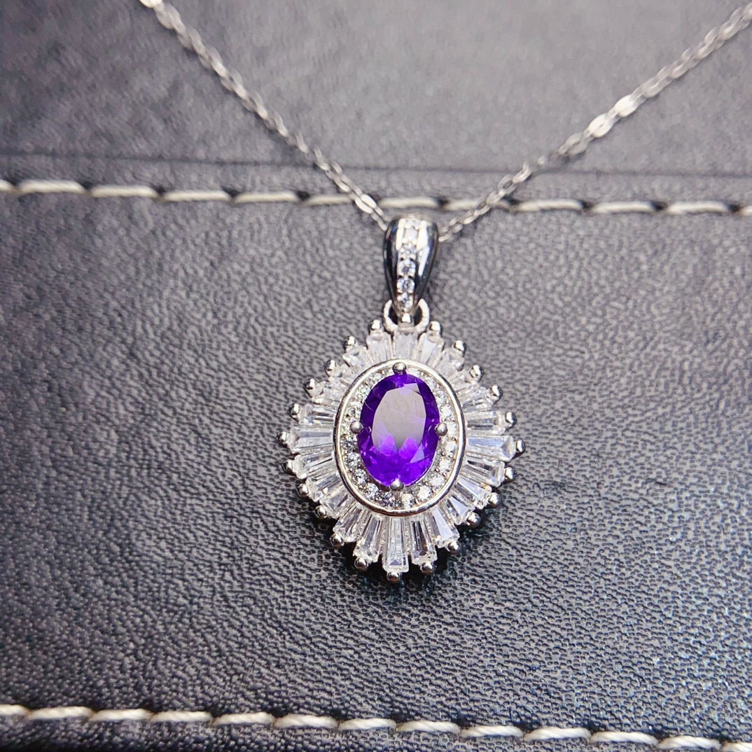 工場卸売人気の天然アメジストペンダント S925 シルバー象嵌メインストーン 5*7 ホット販売ヨーロッパとアメリカの国境を越えたドロップシッピング