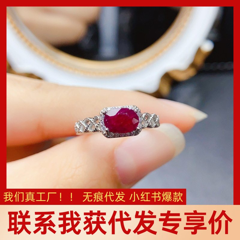 工場卸売り爆金天然ルビー指輪S925銀モザイク主石5*7人気欧米