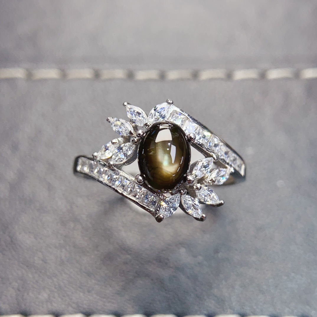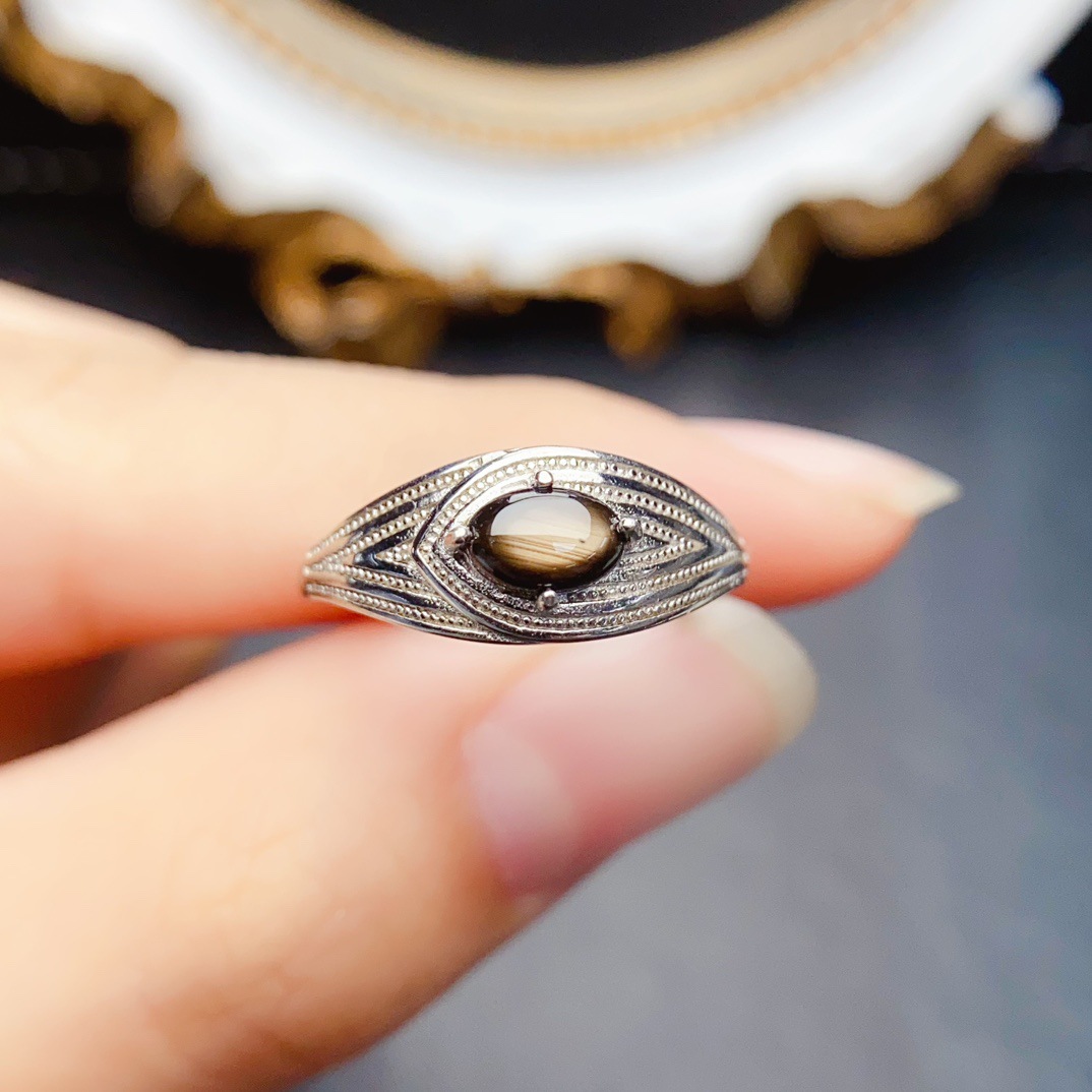 工場卸売人気の天然スターライトサファイアリング S925 シルバー象嵌メインストーン 4*6 ホット販売ヨーロッパとアメリカの 1 個