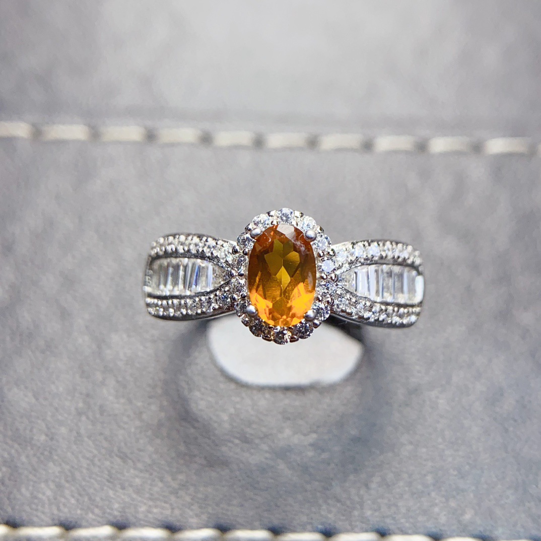 工場卸売人気の天然シトリンリング S925 シルバー象嵌メインストーン 4*6 ホット販売ヨーロッパとアメリカのドロップシッピング