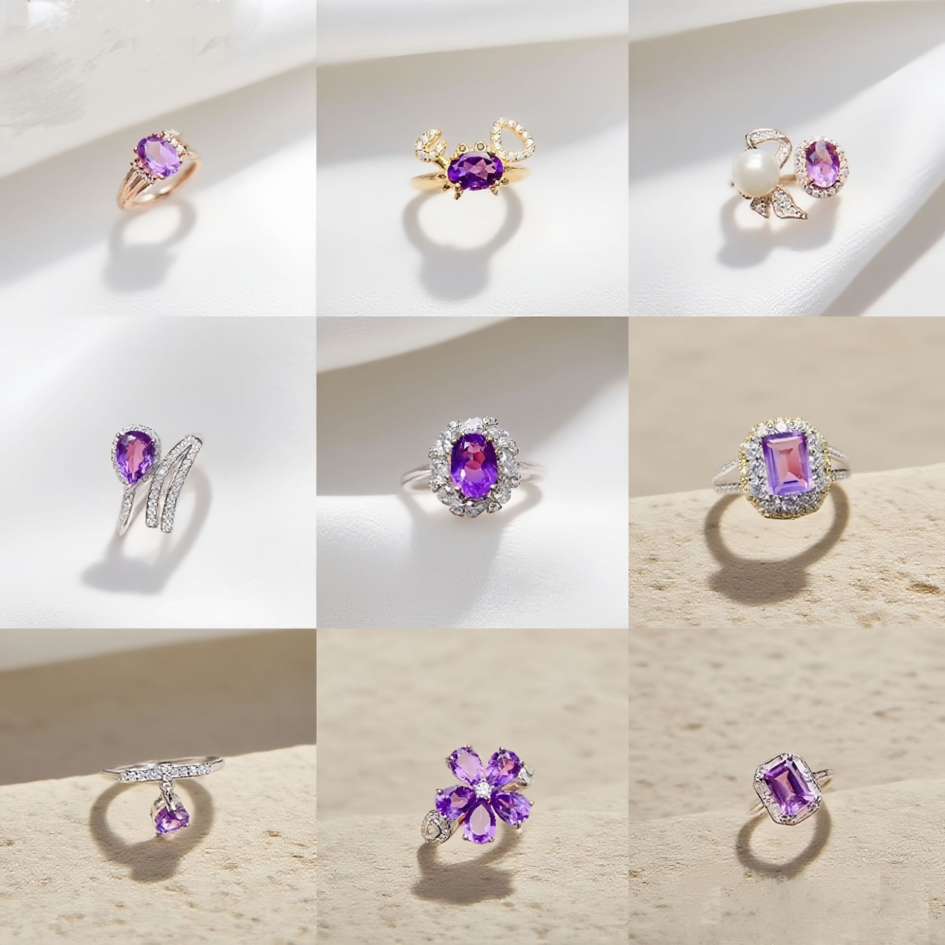 工場卸売人気の天然アメジストリング S925 シルバー象嵌メインストーン 5*7 ホット販売ヨーロッパとアメリカのドロップシッピング