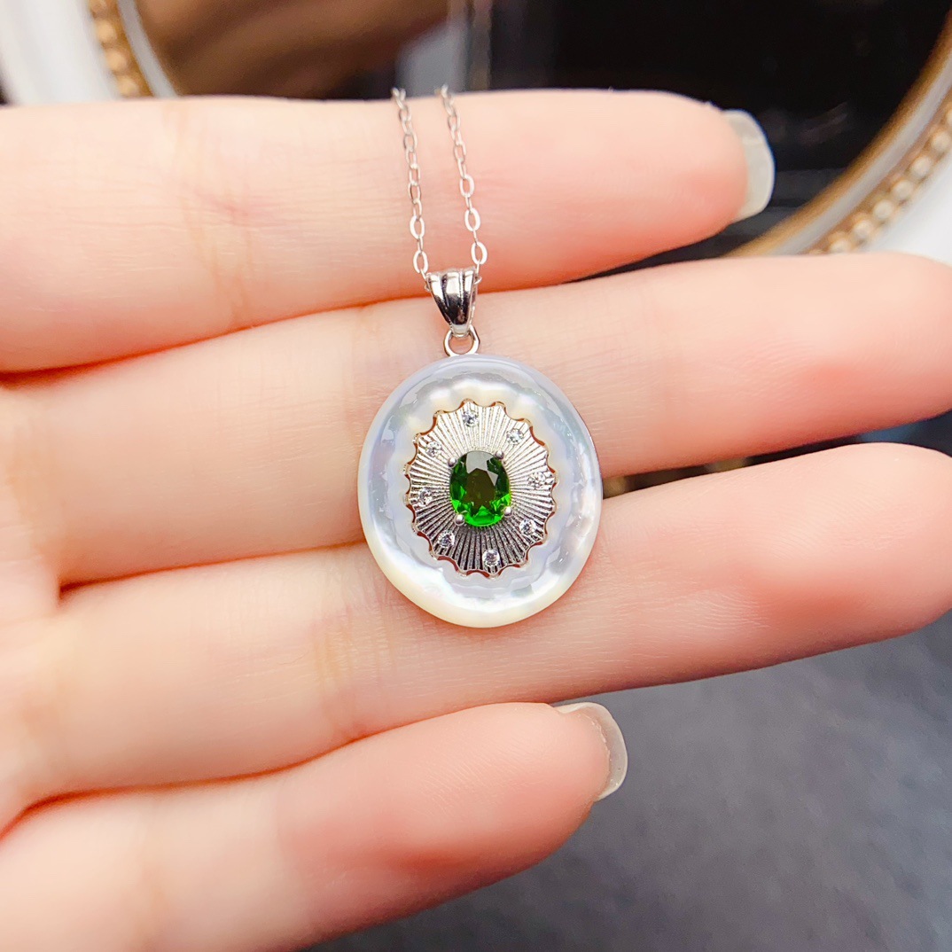工場卸売人気の天然透輝石ペンダント S925 シルバー象嵌メインストーン 4*5 ホット販売ヨーロッパとアメリカのドロップシッピング