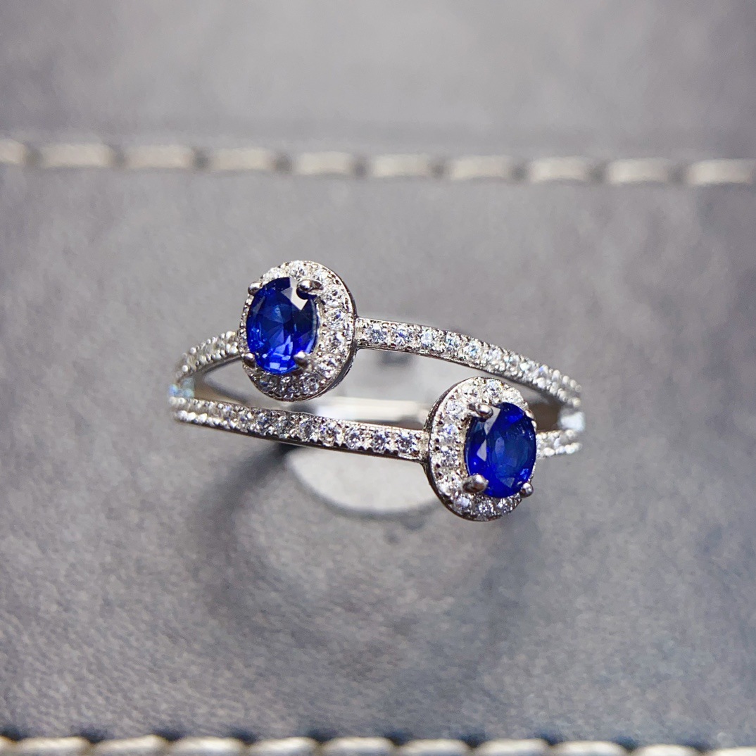 工場卸売人気の天然サファイアリング S925 シルバー象嵌メインストーン 3*4 ホット販売ヨーロッパとアメリカのドロップシッピング