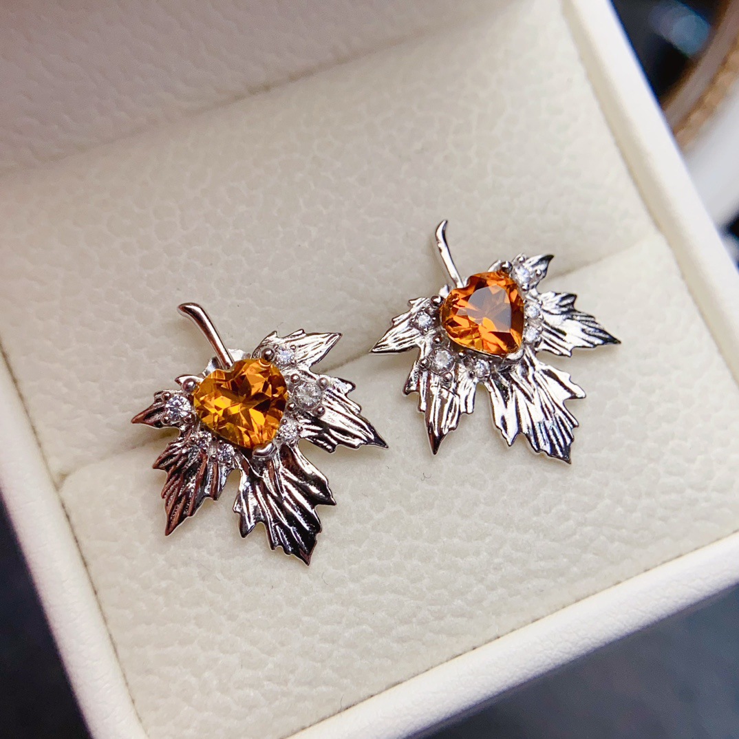 工場卸売人気の天然シトリンイヤリング S925 シルバー象嵌メインストーン 6*6 ホット販売ヨーロッパとアメリカのドロップシッピング