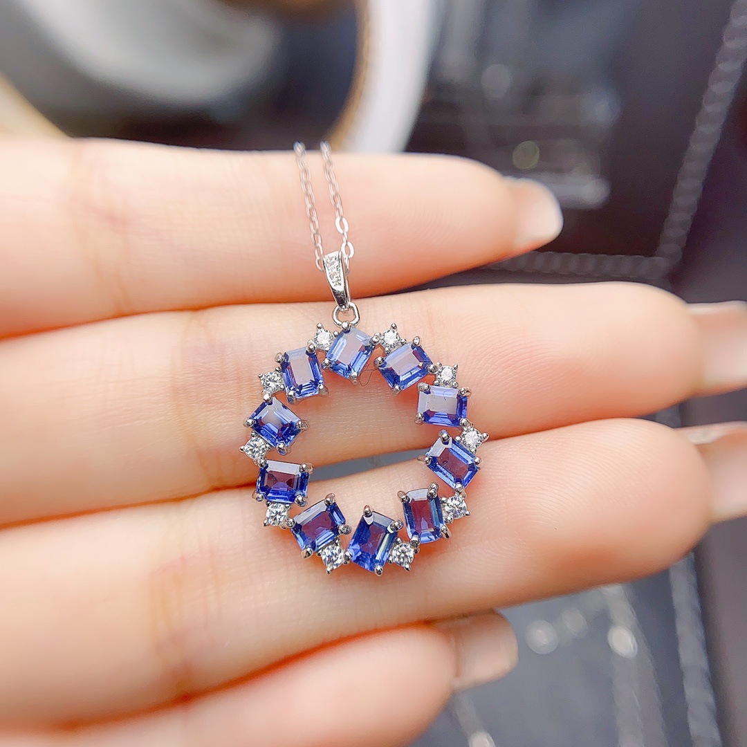 工場卸売り爆金天然粉藍宝ネックレスs925銀モザイク主石2.5*5人気欧米の世代