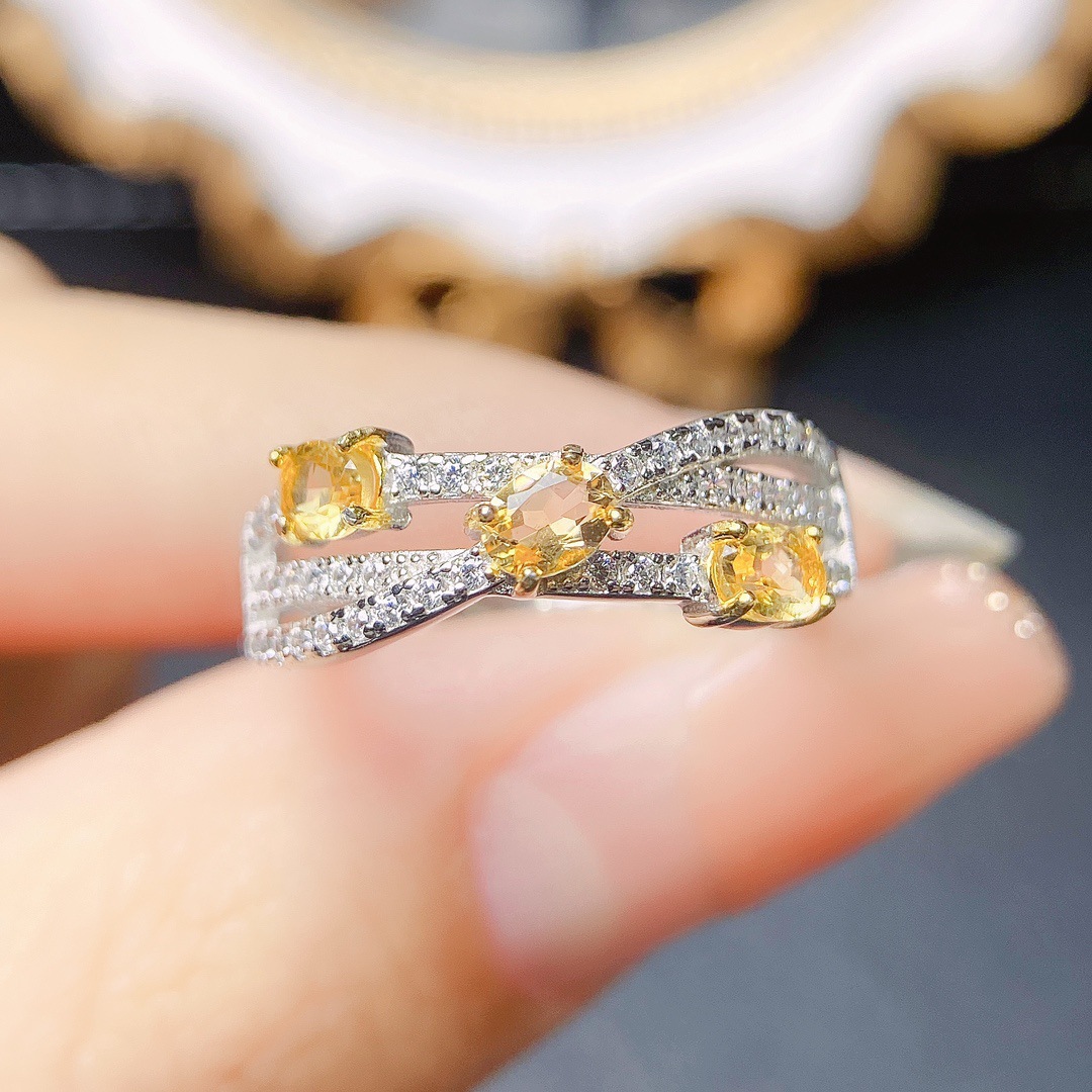 工場卸売り爆金天然黄水晶指輪s925銀モザイク主石3*4人気欧米代発