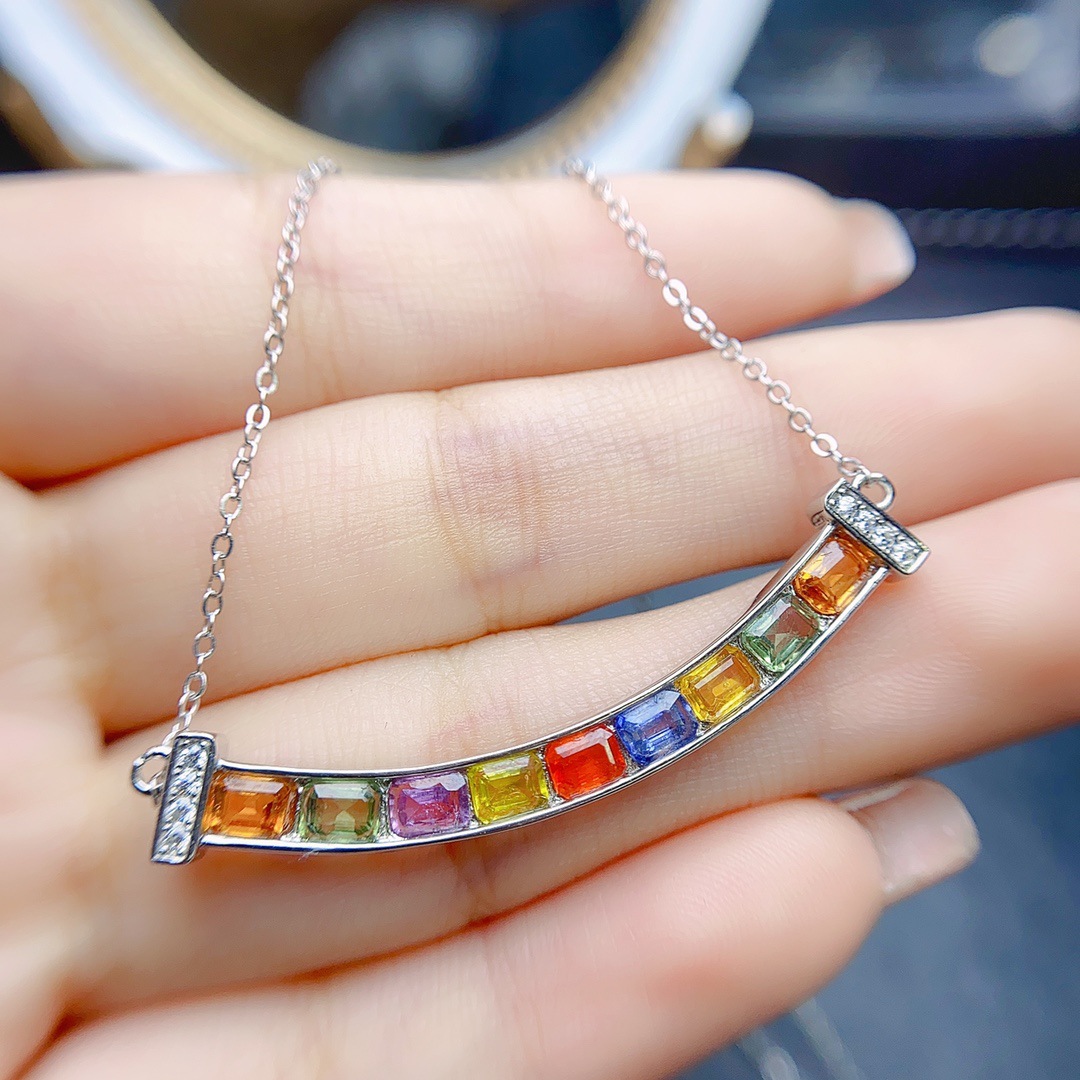 工場卸売り爆金天然サファイアペンダントs925銀モザイク主石3*4人気欧米代発