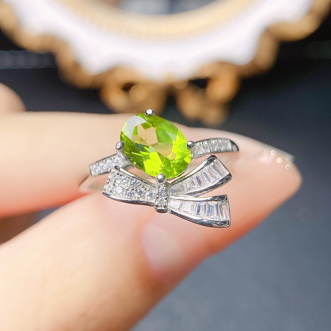 工場卸売りの爆発的な天然オリビン指輪s925銀モザイク主石6*8人気欧米の代理店