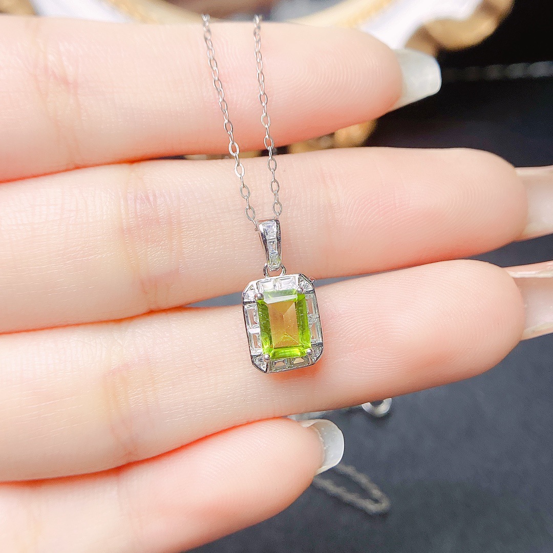 工場卸売り爆金天然オリビンペンダントs925銀モザイク主石5*7人気欧米代発