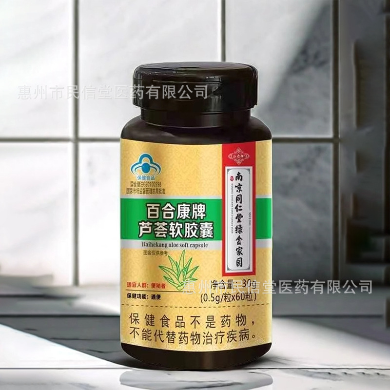 南京同仁堂緑金家済寿祥百合康牌アロエソフトカプセル30g/60粒