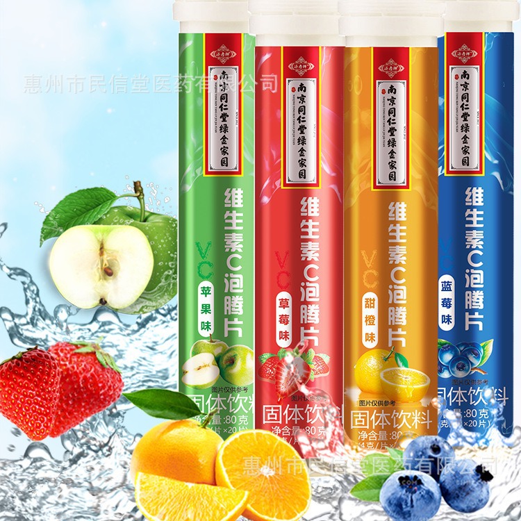 南京同仁堂緑金家済寿祥ビタミンc泡騰片固体飲料甘いオレンジブルーベリー味卸売り