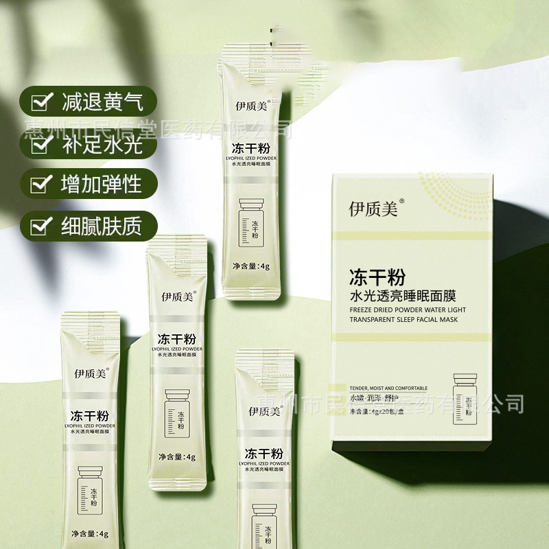 伊質美冷凍乾燥粉水光透亮睡眠マスク水分補給保湿無洗式マスク卸売り4g20バッグ