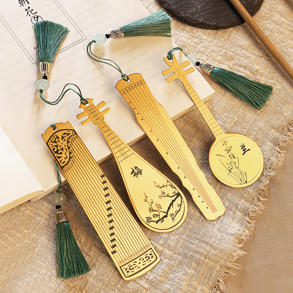 Sクラシック楽器しおり中国風金属耕すステンレス鋼しおり刻字国風文創ギフト