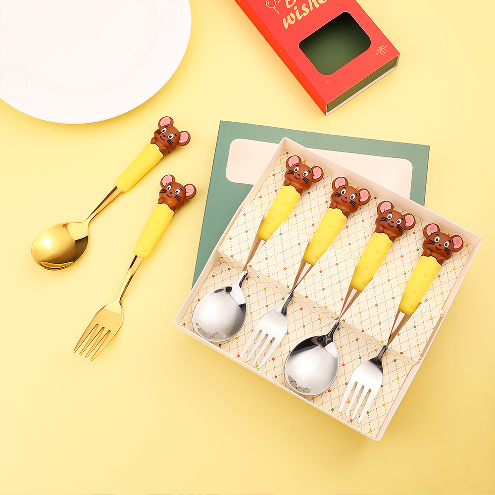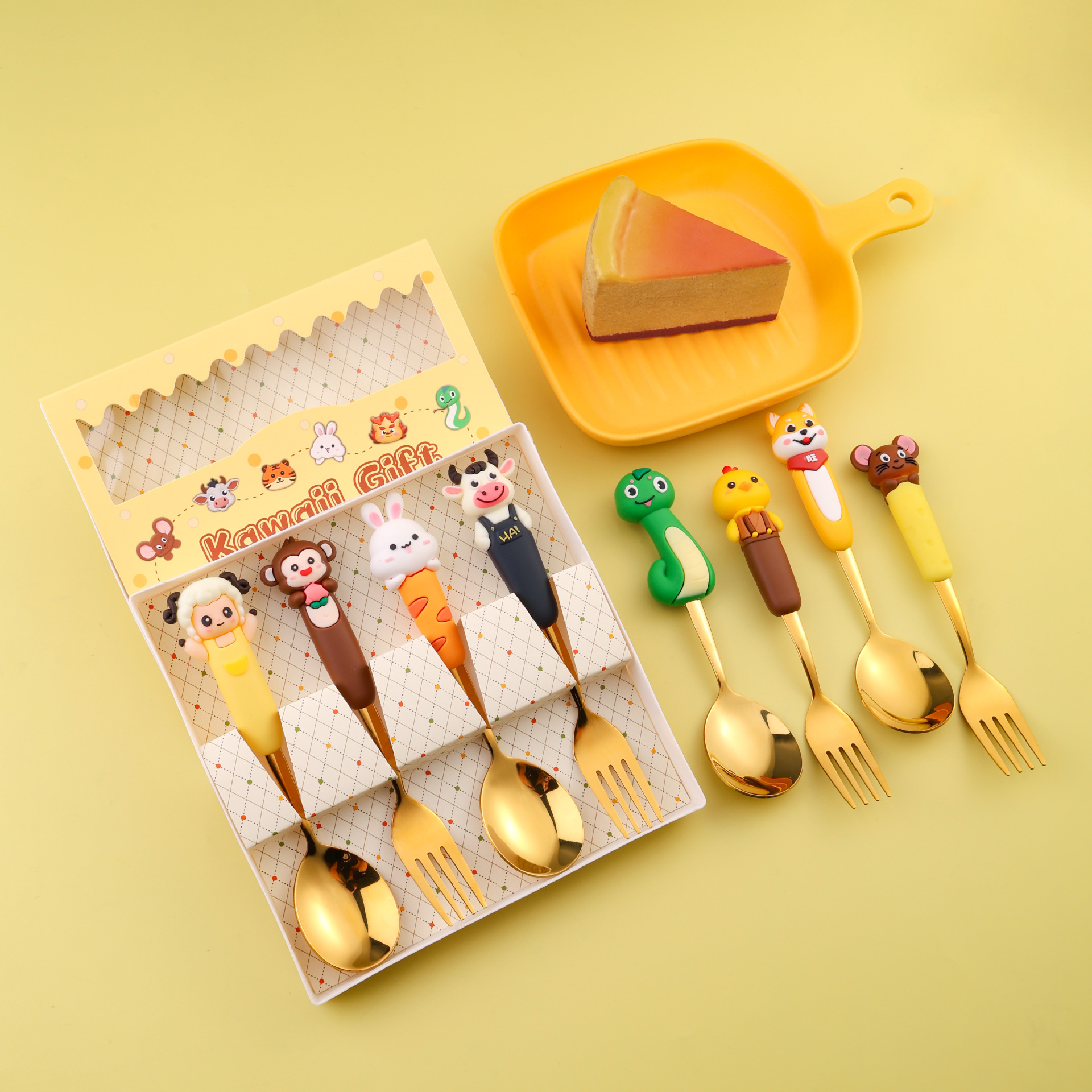 Sかわいい漫画スプーンフォークギフトボックスセットステンレス食器クリエイティブ動物スプーン子供ミキシングスプーンフルーツフォーク