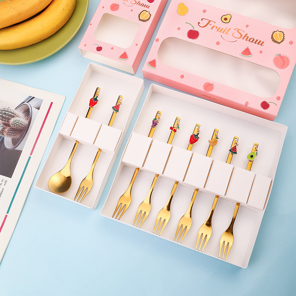 S クロスボーダークリエイティブスプーン食器セットフルーツイチゴチェリーコーヒースプーンインフルーツフォークペンダントスプーンフォークギフト