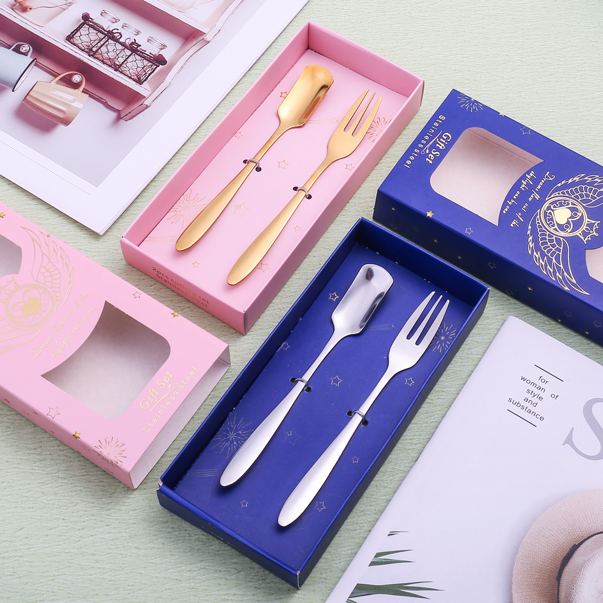Sクリエイティブステンレス漫画动物ペンダントコーヒーデザート子ケーキフルーツフォークギフトボックススプーンフォークセット