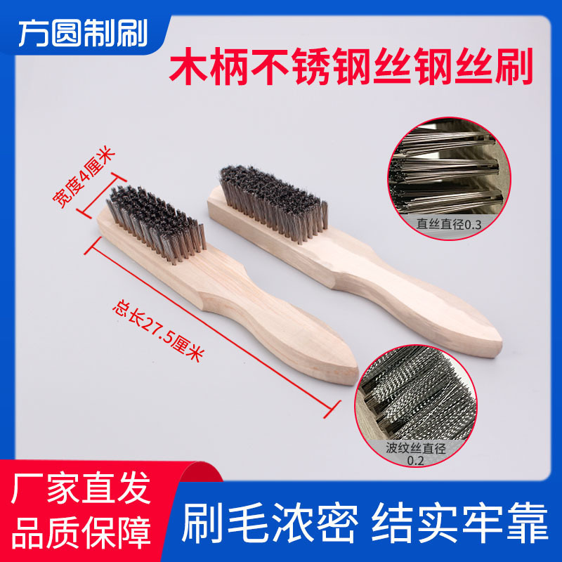 木柄ワイヤーブラシ6*15暗号化ステンレスワイヤー錆除去研磨洗浄ブラシ魚鱗焼きステンレスブラシ