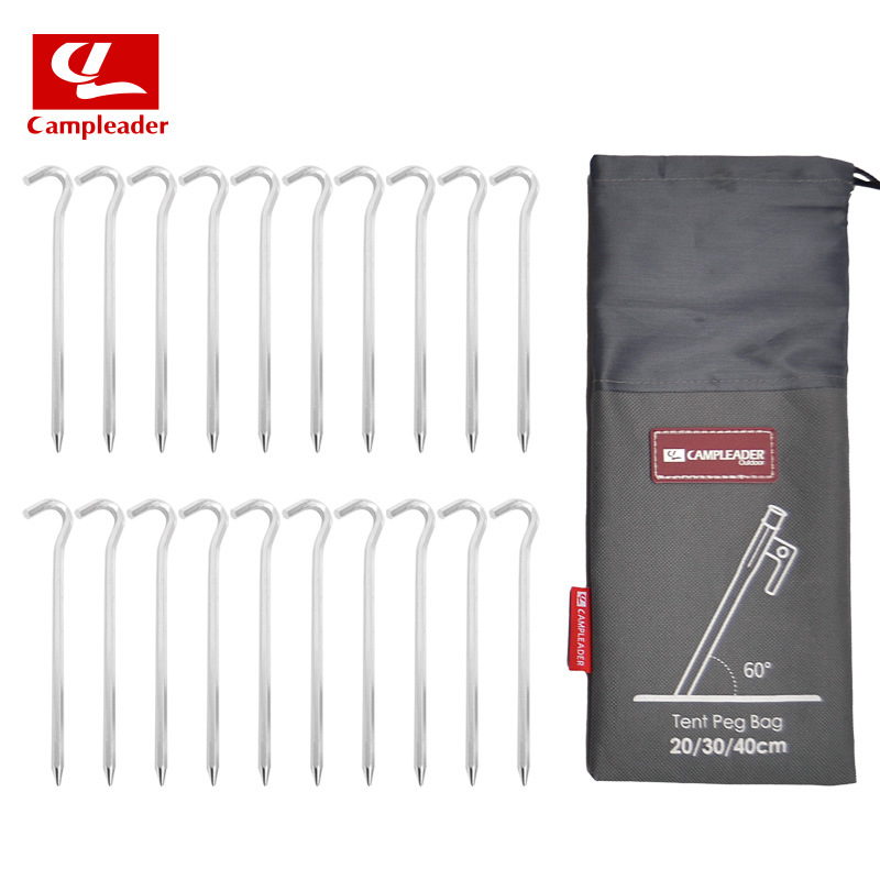 屋外キャンプ用テント部品曲げフックアルミ合金風縄エルボ六稜地釘20本とオックスフォード布収納袋
