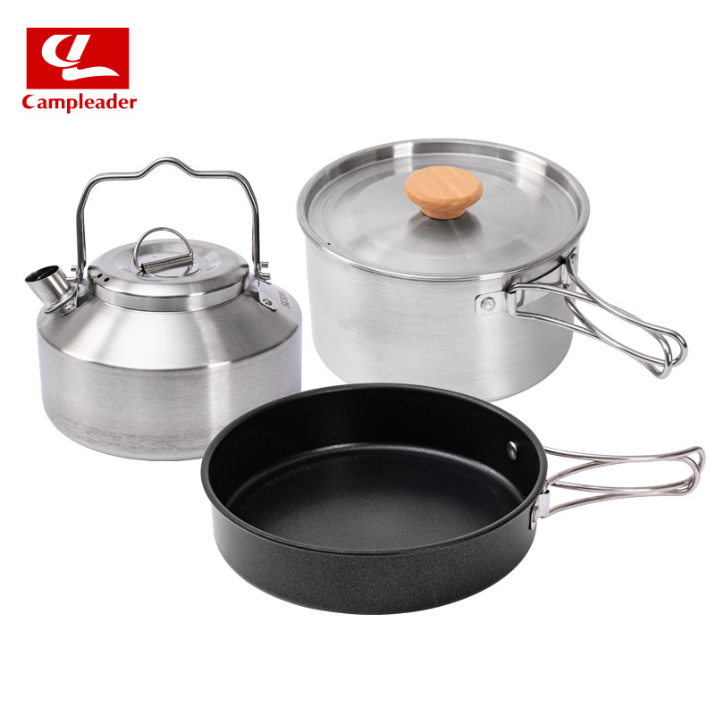 戸外304ステンレス製の鍋ティーポットは、フライパンの湯たんぽのキャンプ食器セット3 ~ 4人にくっつかない