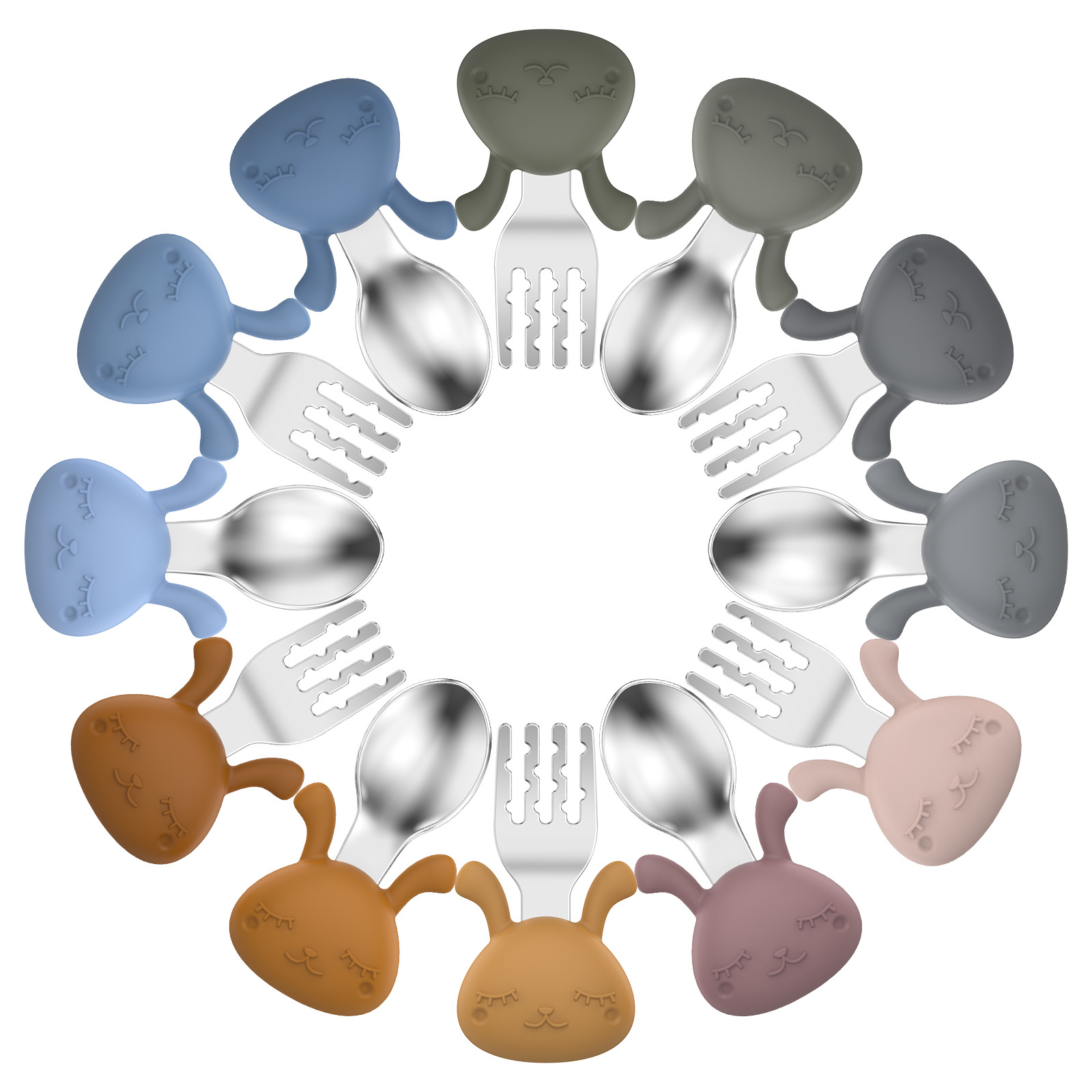 赤ちゃんのシリコンスプーン乳幼児用補助食食器短柄ロケット子供304ステンレススプーンフォーク礼箱セット