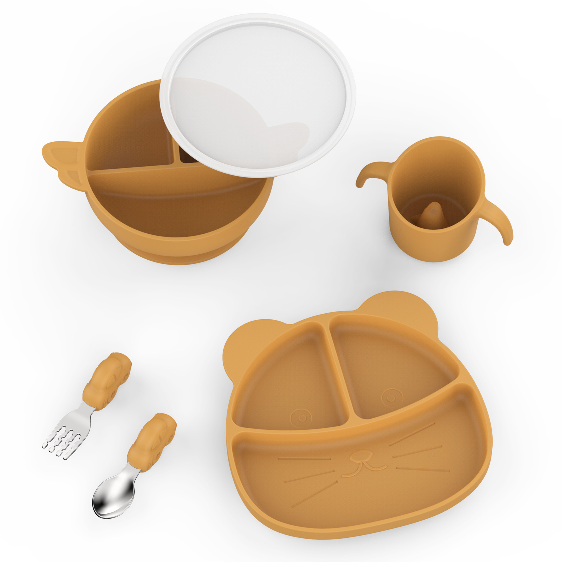アマゾンの子供の食器セットのシリカゲルの創意的な食事の皿の赤ちゃんの補助食の吸盤の碗の赤ちゃんは水を飲んでコップを飲みます。