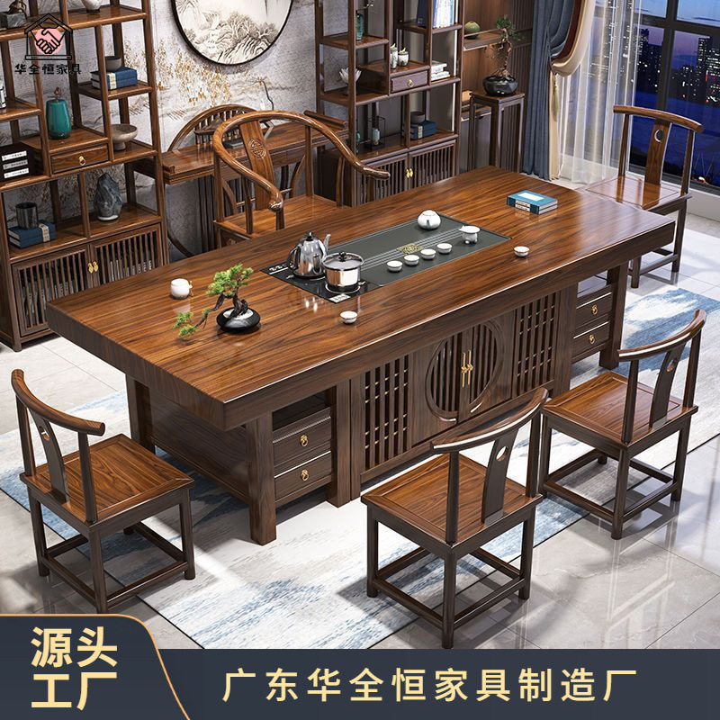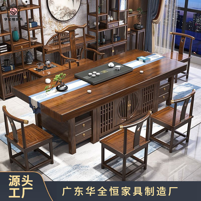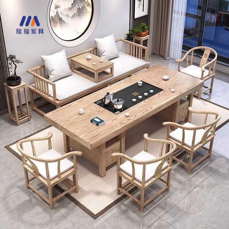 オフィスのお茶のいくつかの木の大きい板のお茶のテーブルと椅子の組み合わせの禅意はお茶のテーブルの一体のセットの新しい中国式を浸します。