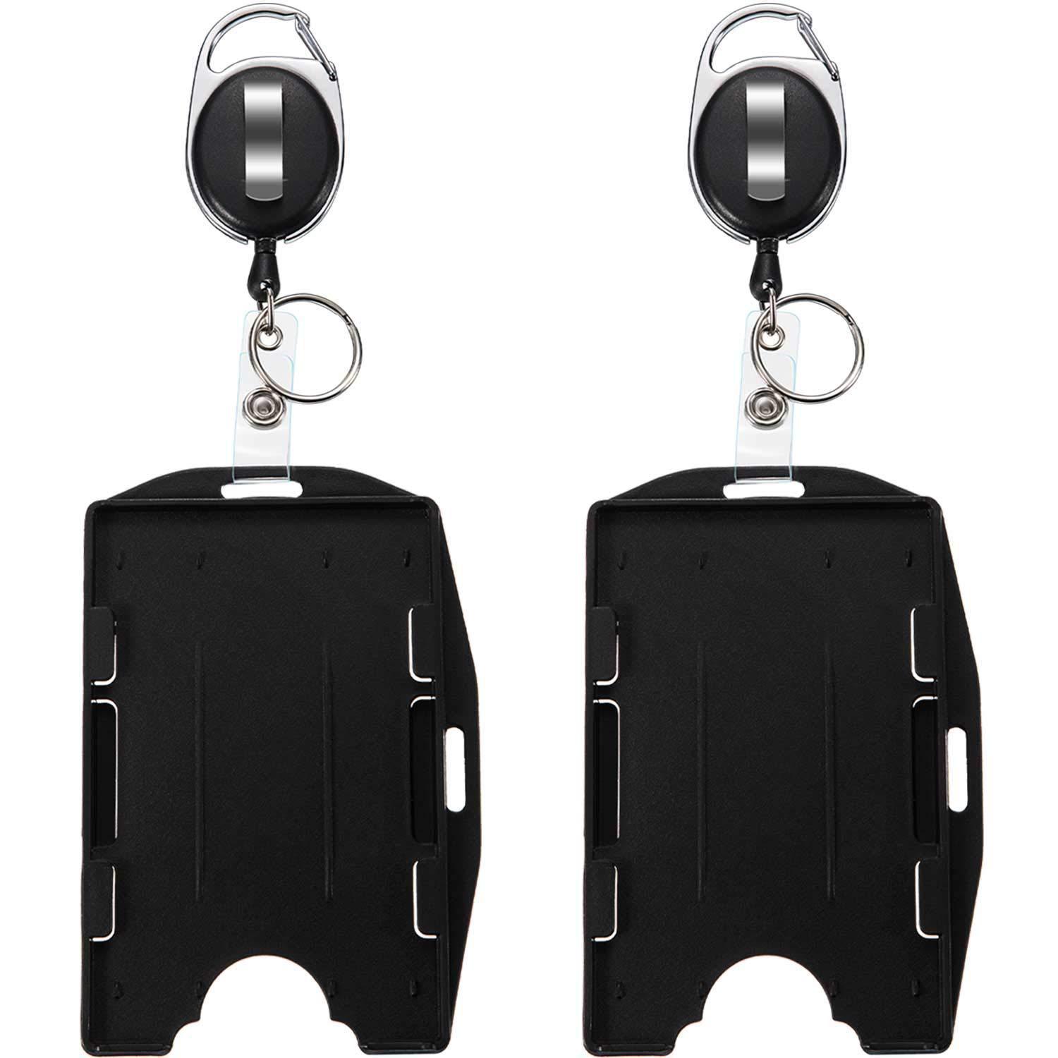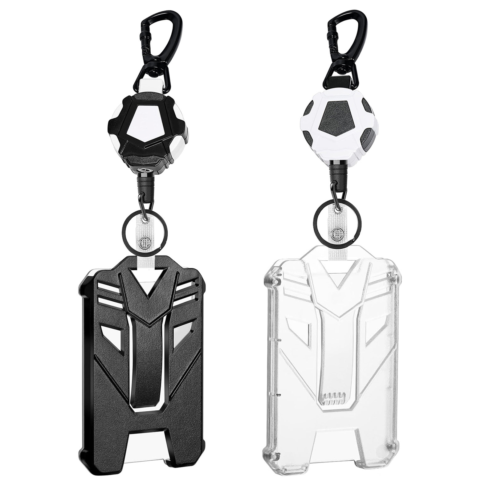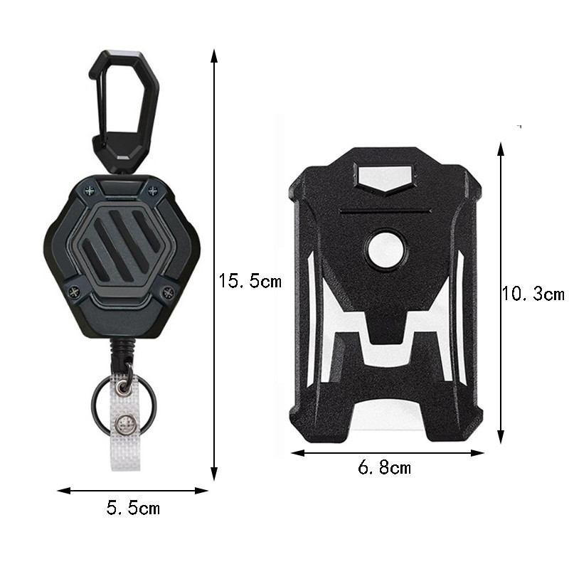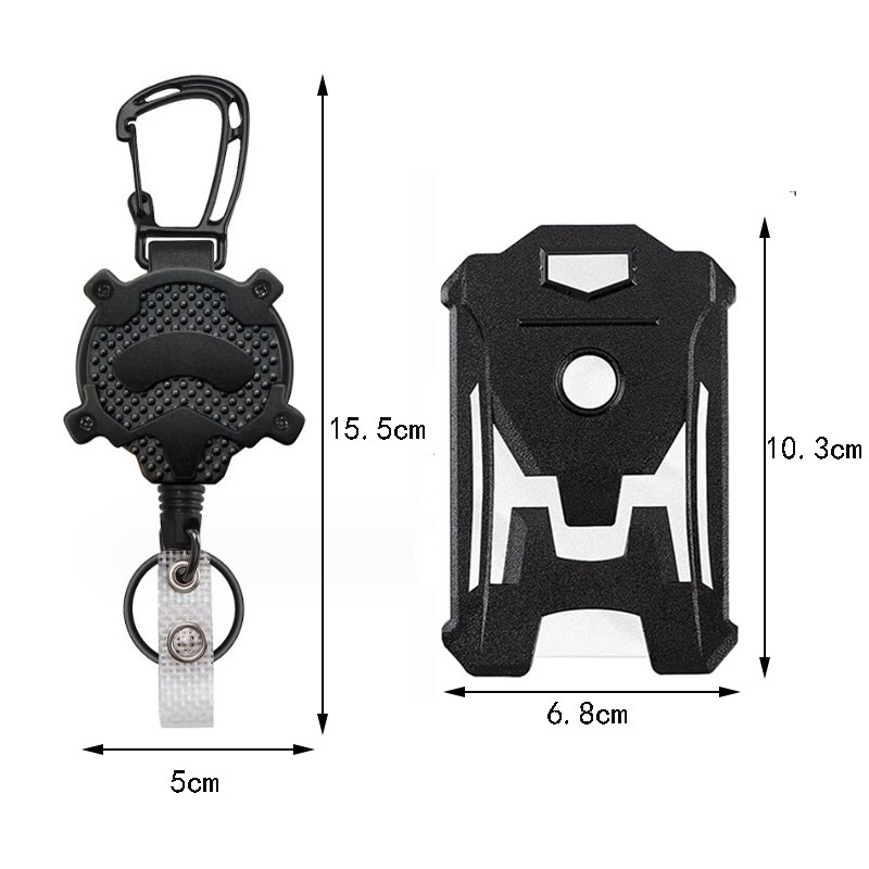 重型アウトドアリュックサックのキーホルダー黒自動伸縮強化ワイヤーロープの引っ張りやすいカードカバーの保護カバー